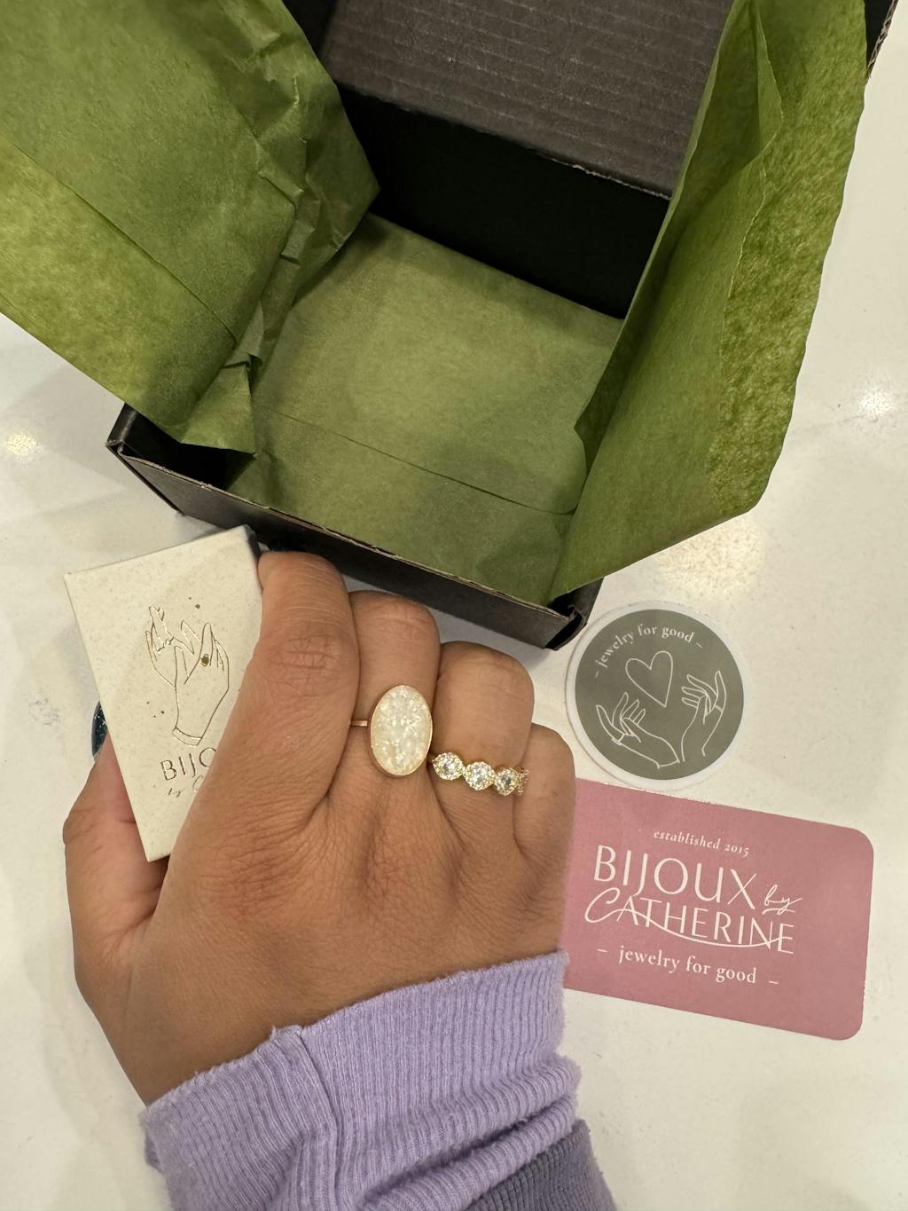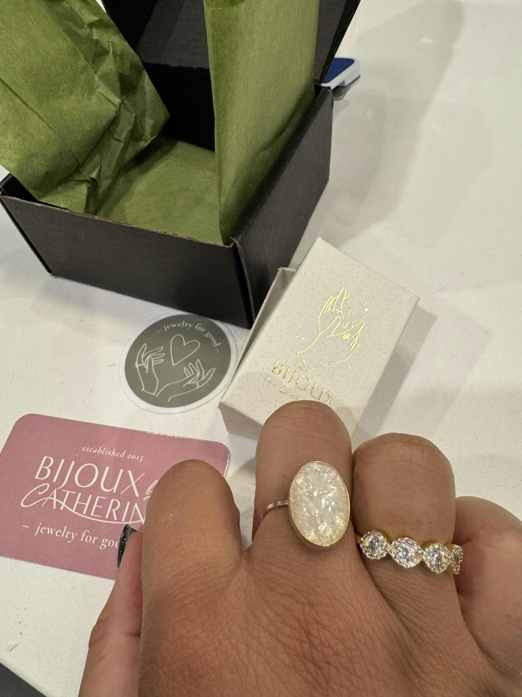 This ring is unique and pure 'stunning sparkle' and is now one of my favorite new rings! You can't go wrong with BIJOUX By Catherine. It's a must to check her out!