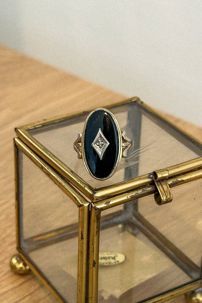 Vintage Sterling Large Onyx Art Deco Ring, Size 4.75