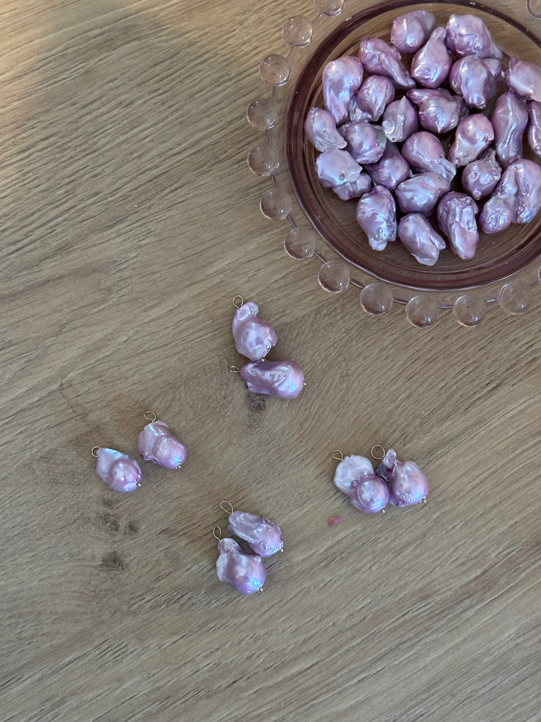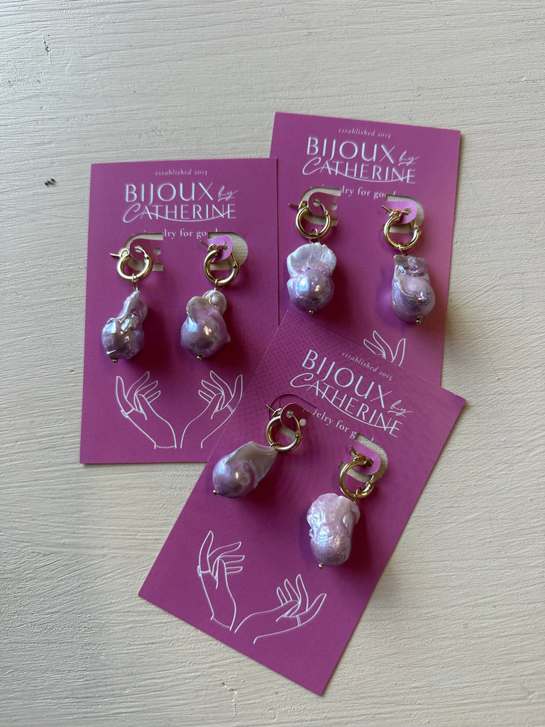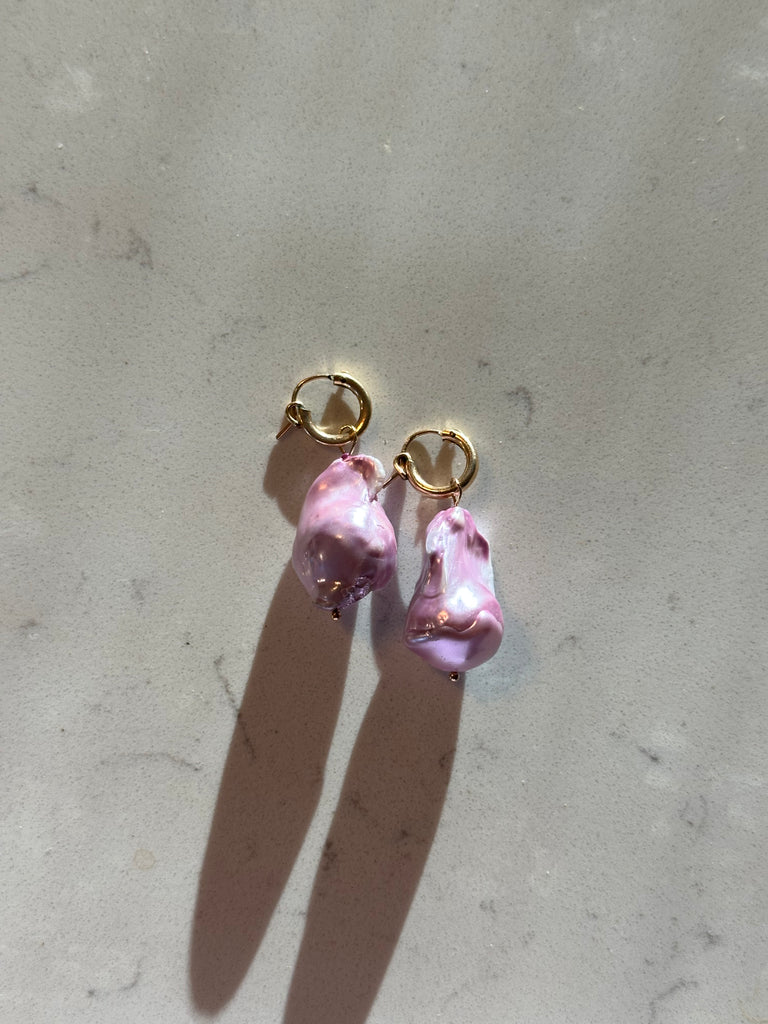 12mm Gold filled huggie hoops adorned with hand selected baroque freshwater pearls.